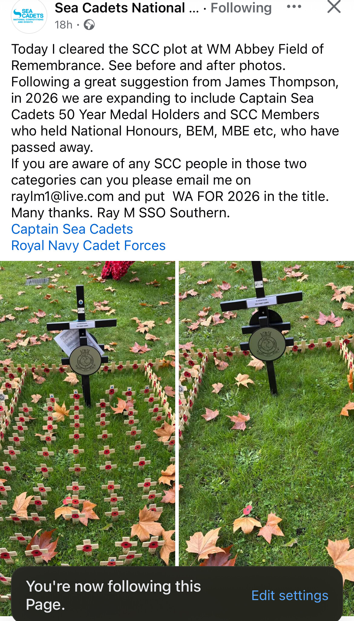 I wasn’t aware that the Sea cadets had a dedicated field of remembrance - what a lovely idea.