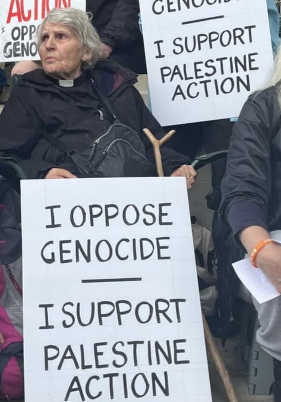 Not her first time, she’s a professional activist more than she’s a vicar, relies on her age and dog collar to avoid prison does our Sue.