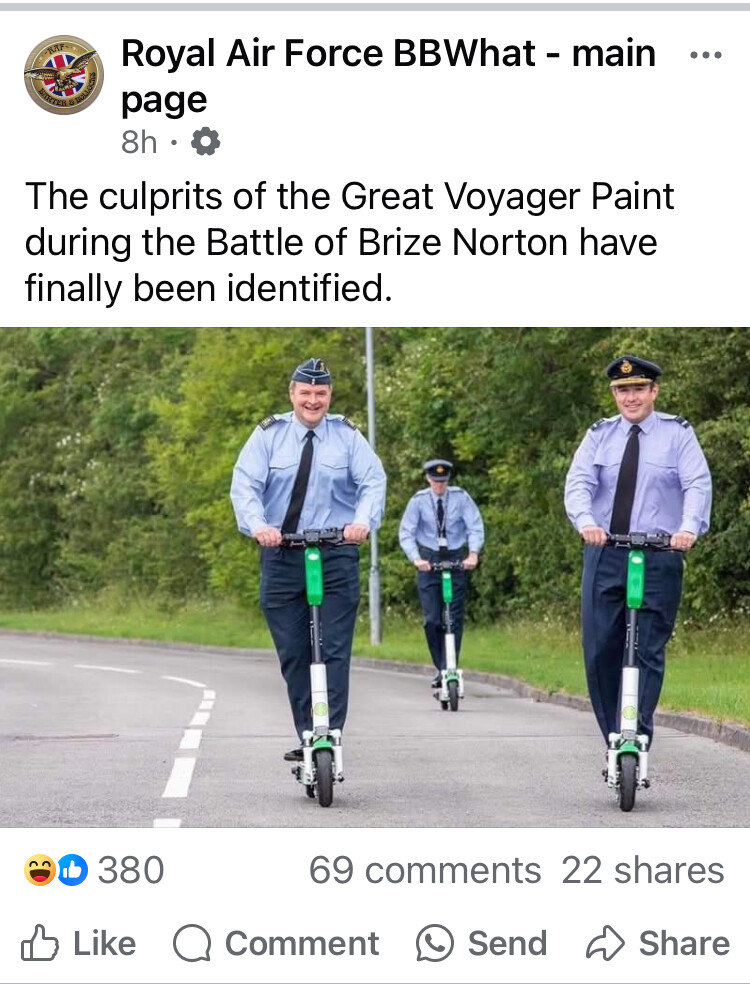Yeah, but they joke is that the people who sprayed them Voyagers got across the airfield on e scooters.