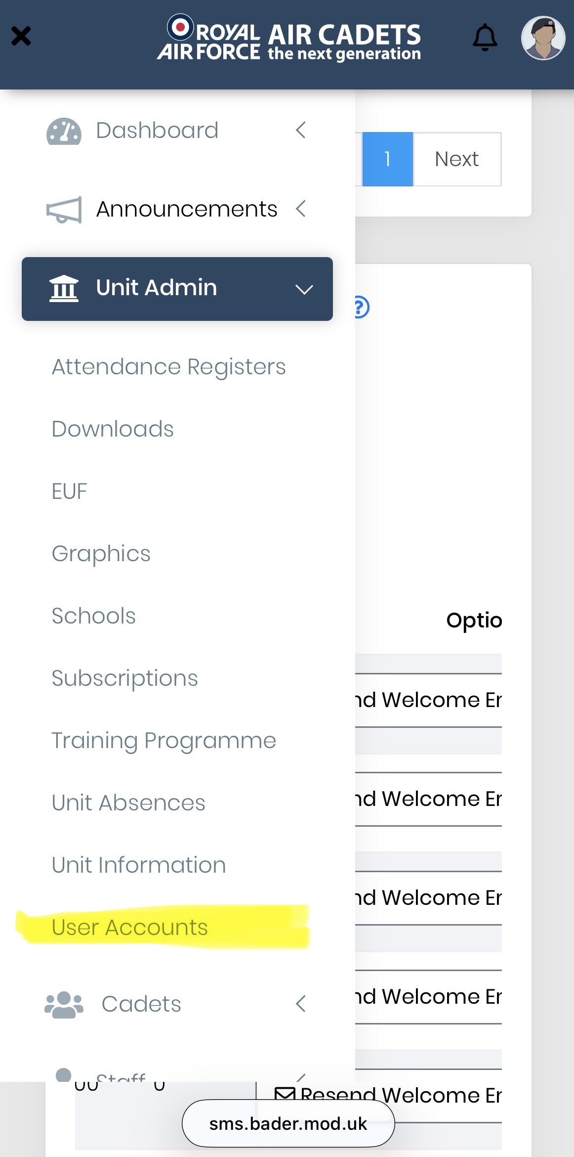 CCF cadet records in SMS are created automatically from the Westminster record, so there is no ‘welcome to BADER’ email. Similar to the cadet in Cadet Portal Password Reset Issues , my cadets are having issues with first login. They don’t have their password, so they need to start by changing it; they get the same message as that cadet ‘You are not registered for password reset’; but they need to access BADER Learn, not the myRAFAC app, so it’s not an app problem.