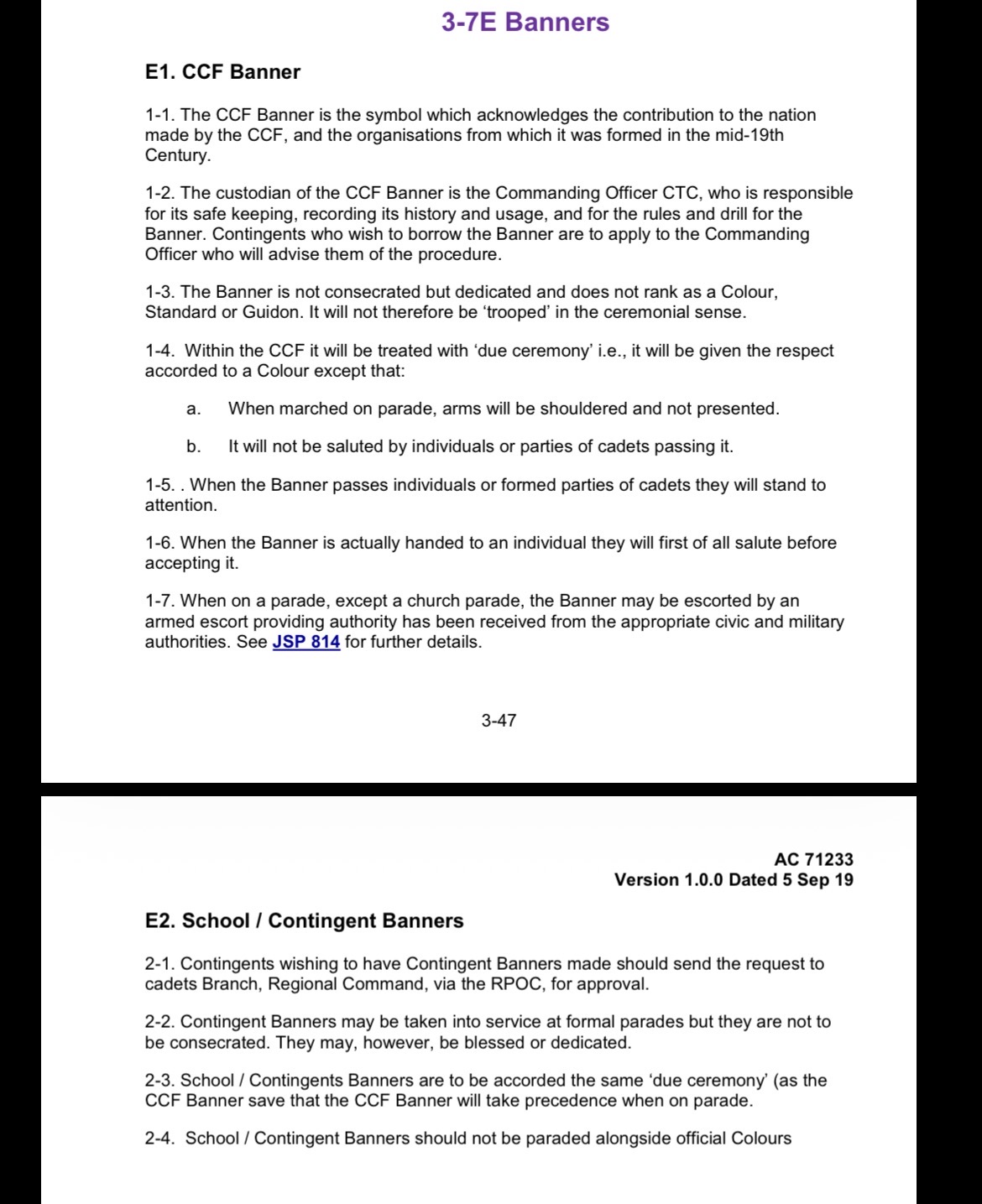 It’s talking about the contingent banner which is the green one with the CCF logo or the dark blue one with the school logo & roses