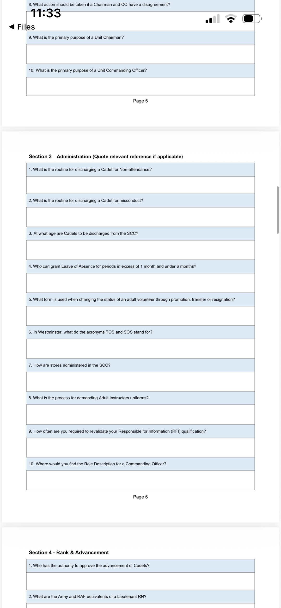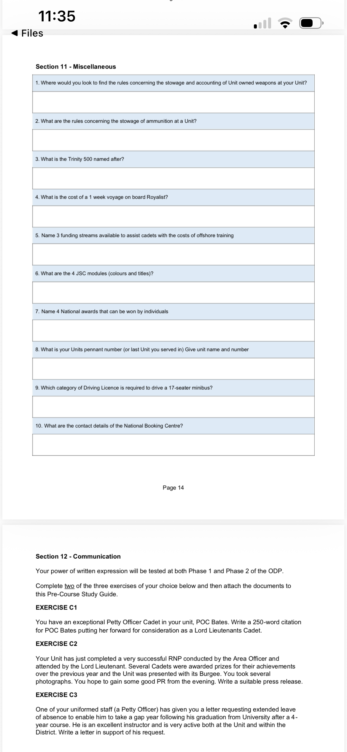 I’ve taken screen shots of the file I have which the sea cadets for those starting their commissioned route.