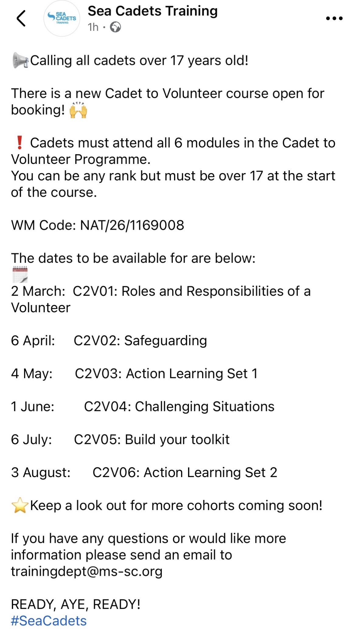 So moving back to topic a little (& taking a bit of inspiration from the sea cadets) currently if someone wishes to move into uniform it’s a bit of an ad hoc process.