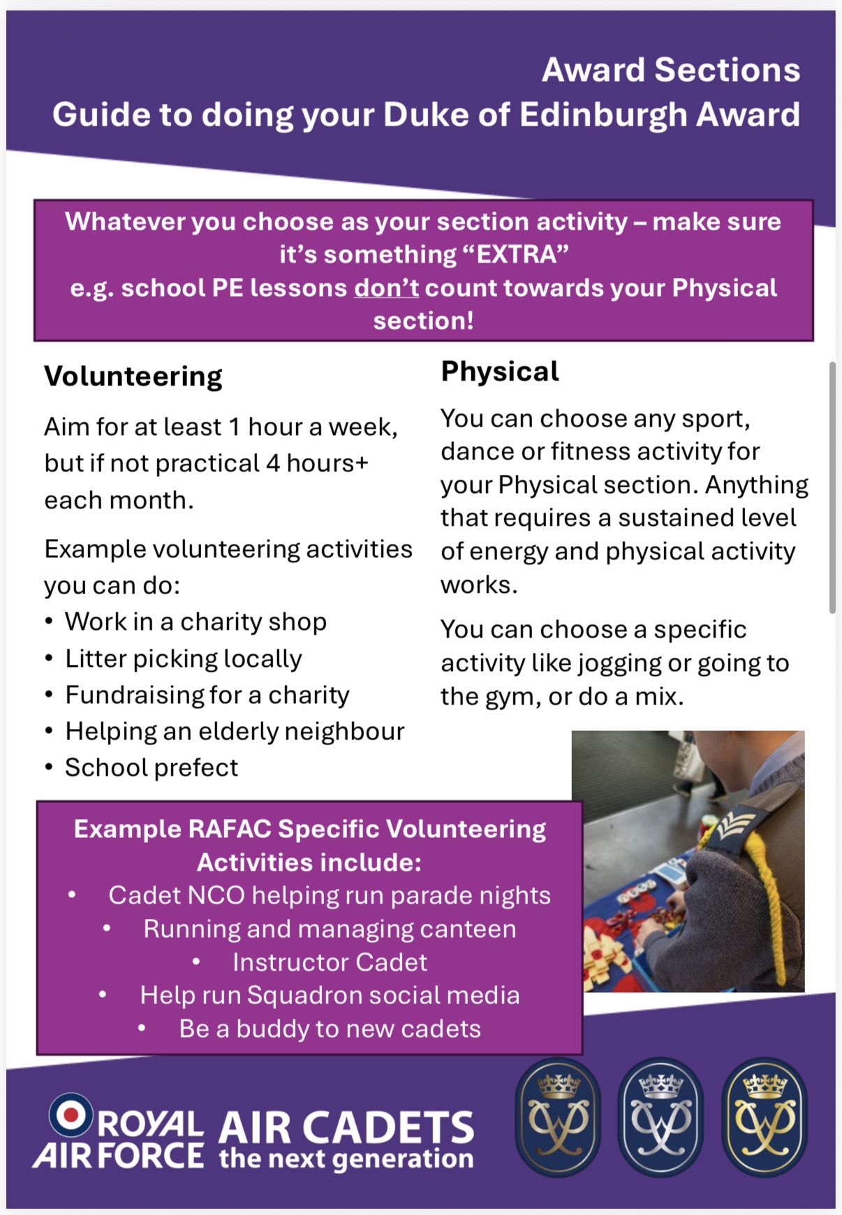 In terms of this, I did my “Volunteering” in my role as Stores Officer on my Sqn, if my memory serves me correctly…the “Skill” was learning the ropes of Adj, and assisting with organisation on the Sqn as a result of that. Mind you, I just scraped my Bronze by the skin of my teeth before turning last year, because I didn’t pick it back up until I was back on the Sqn as a CFAV (uni didn’t offer much that wouldn’t mean forking out a tonne)!