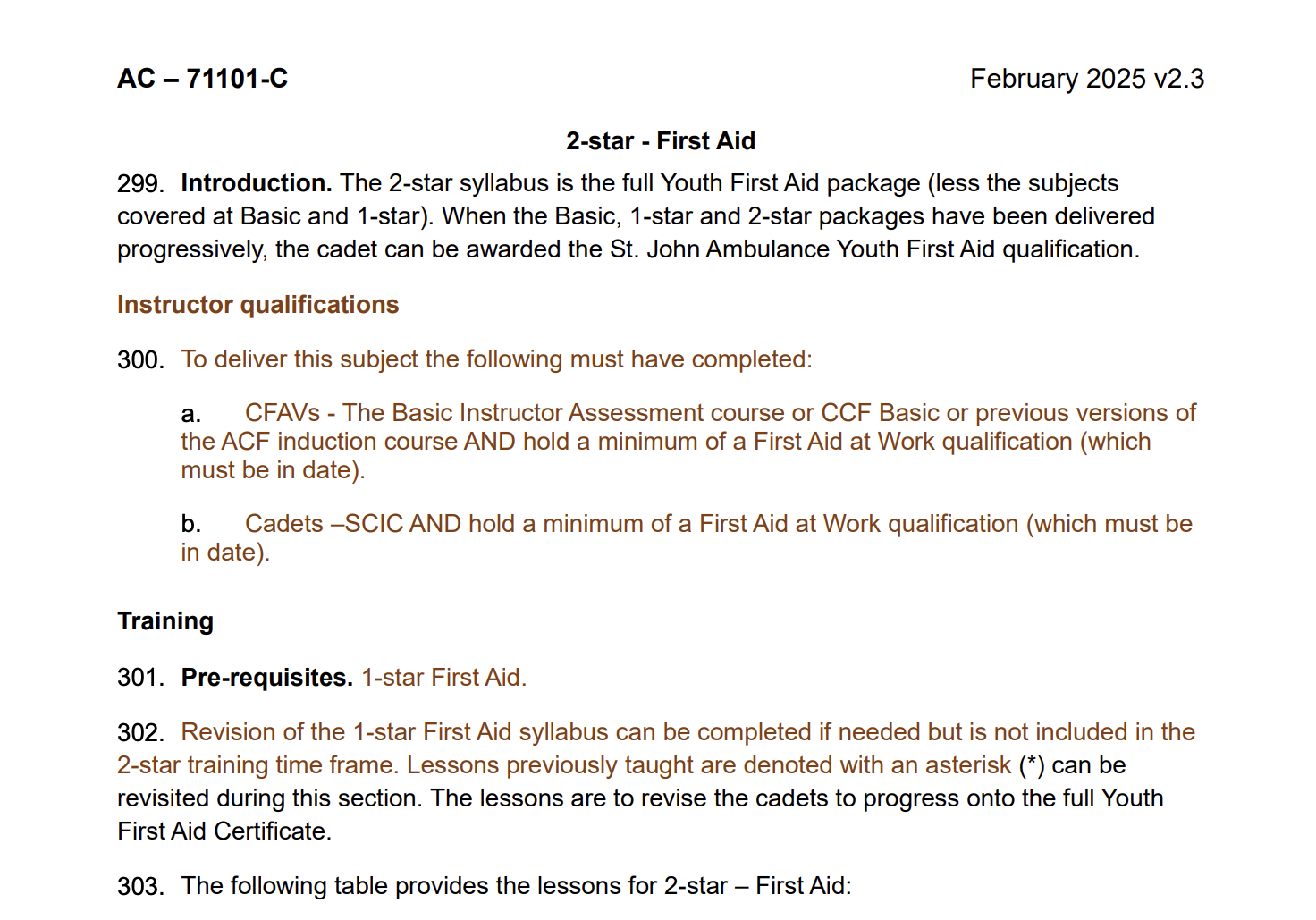 (E.g. CCF/ACF CFAV only require FAAW to teach SJA Youth First Aid)