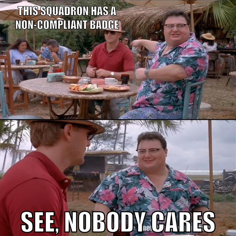 Jokes aside Iām not sure I agree with the meme premise - I know there are some squadrons with very decent looking unofficial badges where the only issue is the lack of approval, but thereās also some that look awfulā¦