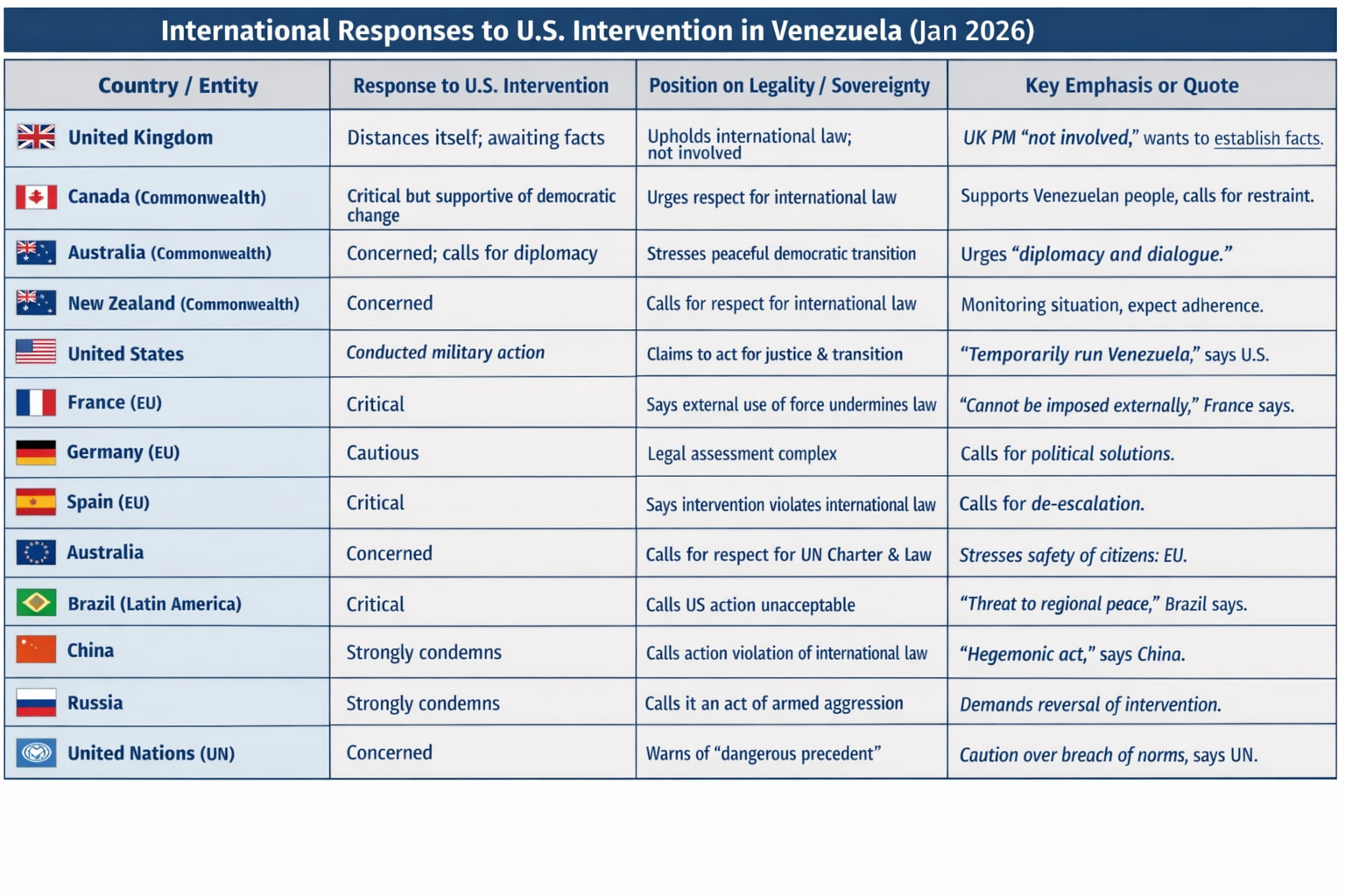 “The military operation that led to the capture of Nicolas Maduro contravenes the principle of non-use of force which Found International Law. France recalls that none durable political solution cannot be imposed of the outside and that the sovereign people decide alone on their own future.