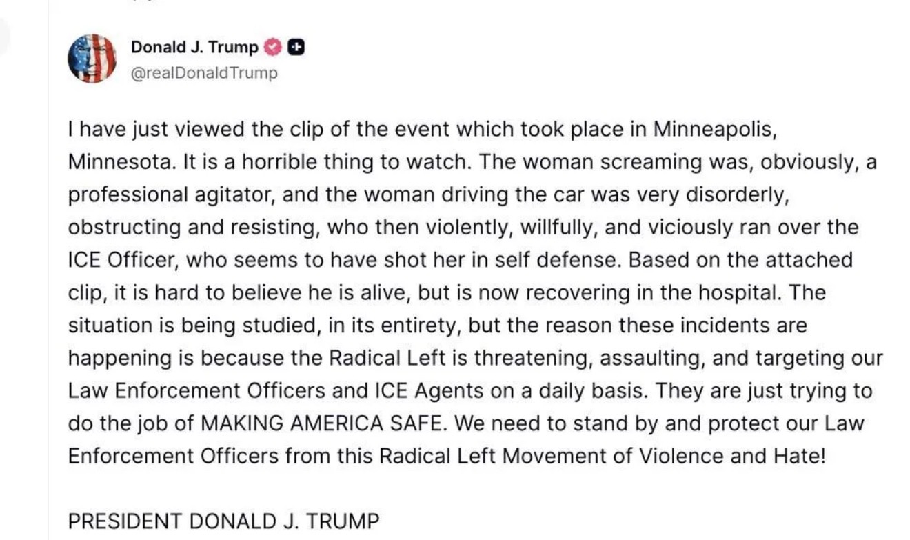 Also, just seen another video from another angle and longer. After he shoots here, and she drives off smashing into a post (because she’s obviously now unconscious) the ICE guys just do nothing. You can tell they are horrifically trained.