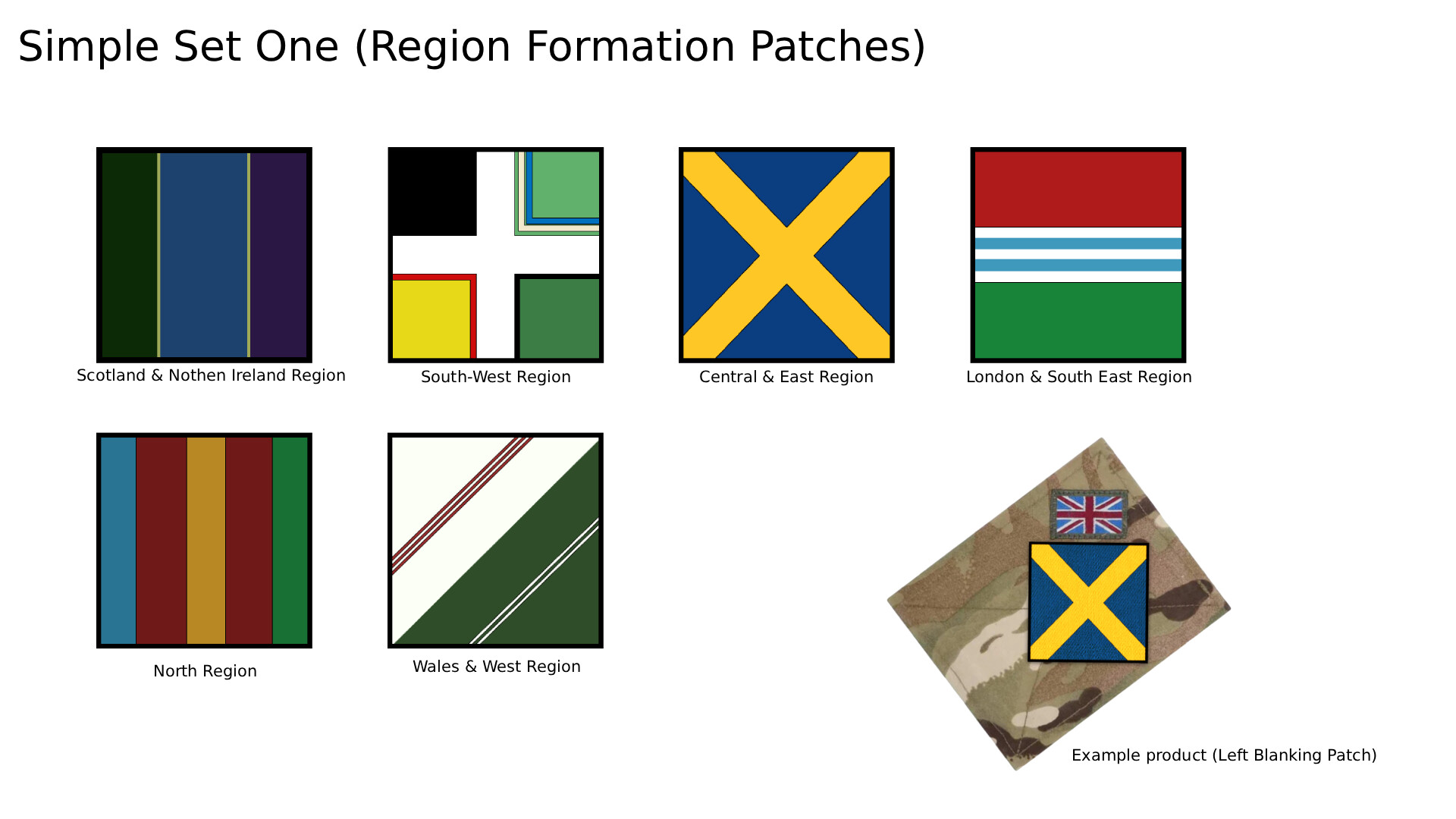 this shows that the suggested top left to bottom right split is both in keeping with existing designs, while also being different enough to identify Cadet Forces