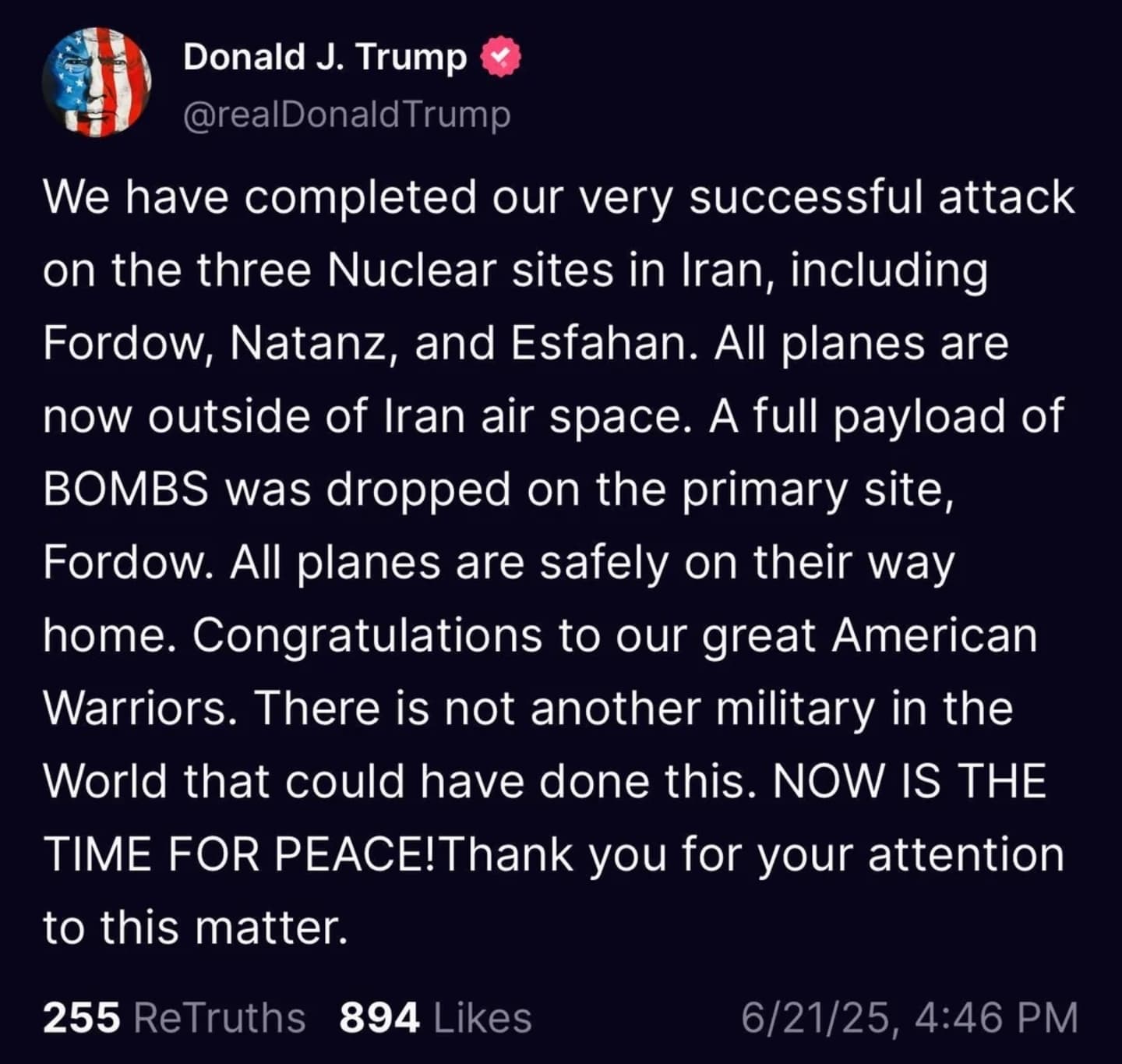 And as for Trump claiming he’s the peace president and how the art of the deal is easy, and no wars under his watch etc. Just another lie that I’m sure his supporters will do mental gymnastics to ignore.